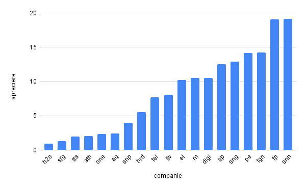Desi toate companiile din indicele BET se apreciaza, deja se vad diferente mari intre ele, conform graficului atasat.